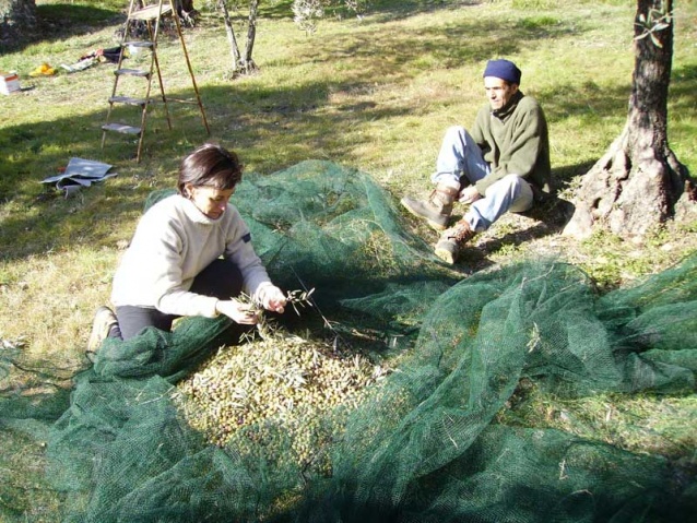Premièrement, on doit ramasser les olives, pour cela on place un filet sous l'arbre et on brosse l'arbre avec un peigne. Ensuite on regroupe...